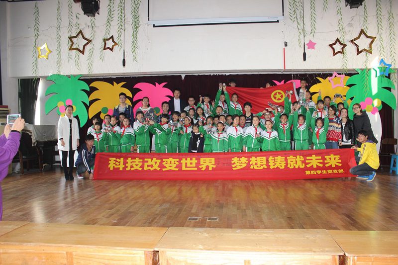 12月26日下午14:30分,永利3044集团第四学生党支部在海口市新南国外国语学校景山分校举办了以“科技改变世界?梦想铸就未来”为主题的实践活动。出席此次活动的有永利3044集团团委书记崔万春老师,第四学生党支部书记崔建兵老师,第四学生党支部科技梦想服务员15名成员,参加此次活动的有新南国外国语学校景山分校小学近60名师生。