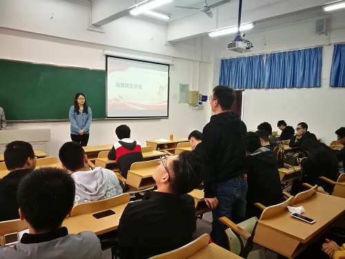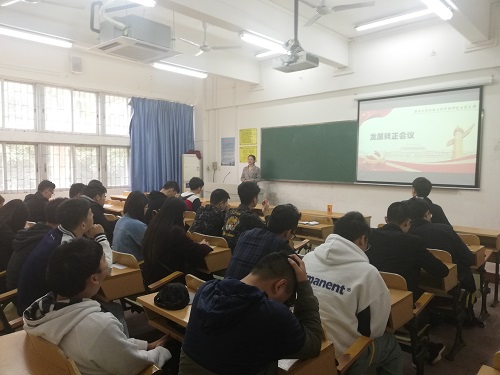 预备党员转正大会伊始,主持人施晓佳对三位待转正的同学做了简短的介绍。紧接着,三位申请转正的预备党员依次向党组织汇报了自己的对党认识和入党动机,详细报告了自己在预备期间的思想行动和党性修养,同时也表达了对成为一名正式党员的迫切愿望。随后,党支部正式党员对新一批同志能否成为预备党员进行了讨论并做无记名投票。最终,三名预备党员均获得半数以上的同意票,满足票数要求。