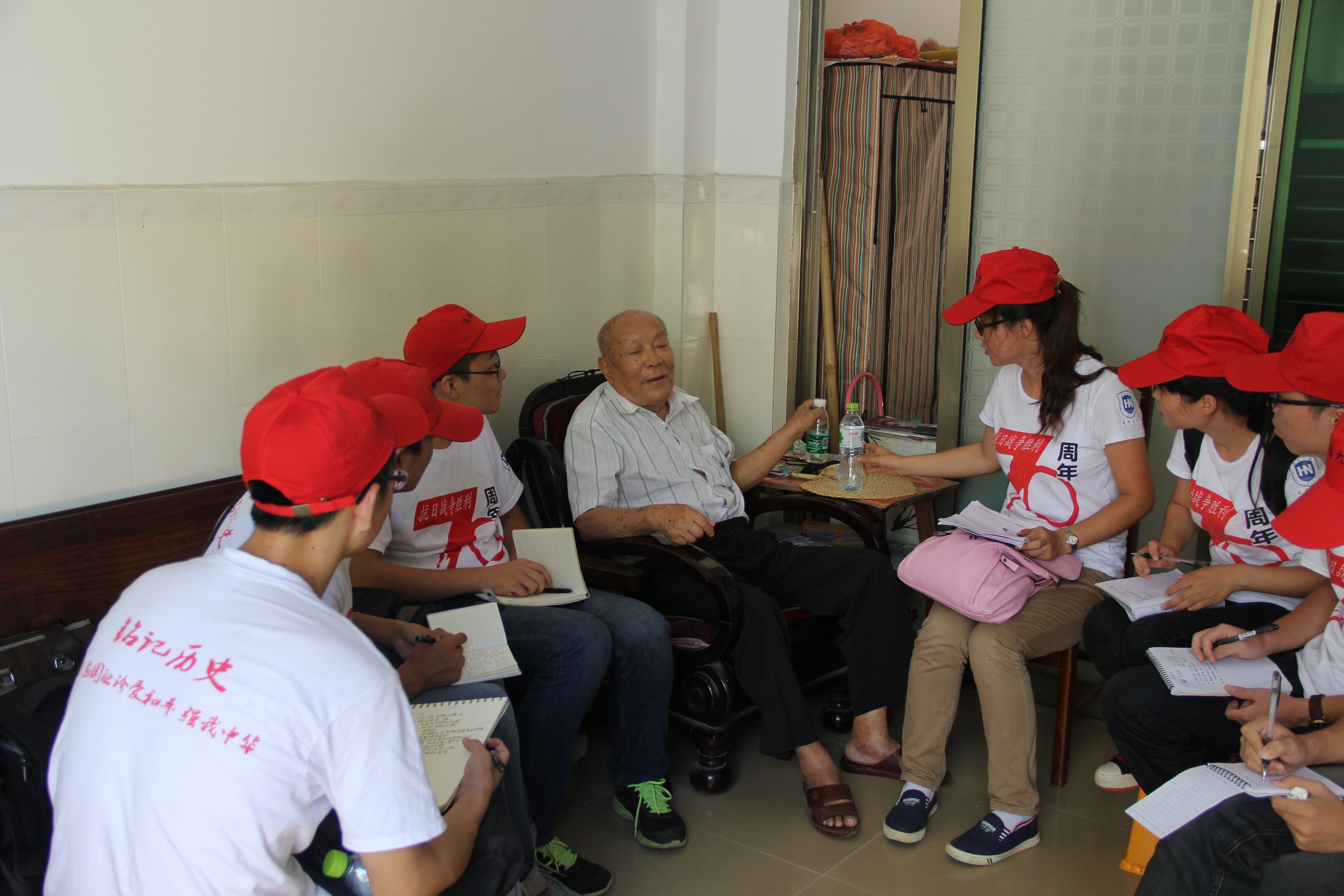2015年是中国人民抗日战争暨世界反法西斯战争胜利70周年,为缅怀抗战先烈,传承革命精神,由团中央学校部、人民日报社政文部发起的全国大学生纪念抗战胜利七十周年寻访活动。8月7日,由中共琼海市委宣传部、永利3044集团组建的纪念抗战胜利70周年寻访团一行16人,赴琼海市军休所、万泉镇探访抗战老兵。