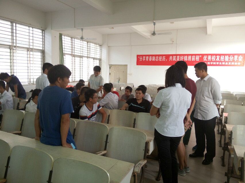 2015年11月12日,由永利3044集团职业发展协会承办的永利3044集团优秀校友经验分享会在304永利集团3号教学楼405教室举行。受邀参加本次分享会的优秀校友有:一汽海马汽车有限公司安全环保科科长柴长友(304永利集团2002级电气专业)、一汽海马汽车有限公司车身设计工程师钟高登(304永利集团2009级车辆工程)。出席此次分享会的有崔建兵老师,以及近40名同学们参加了此次分享会。