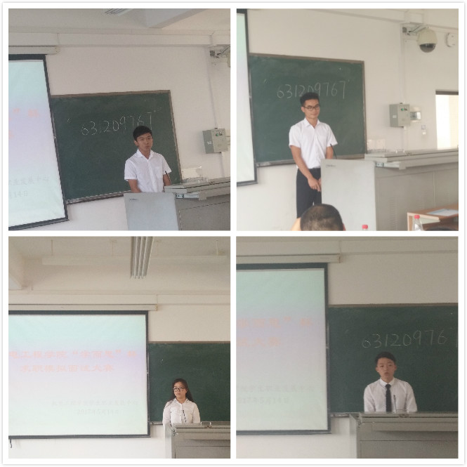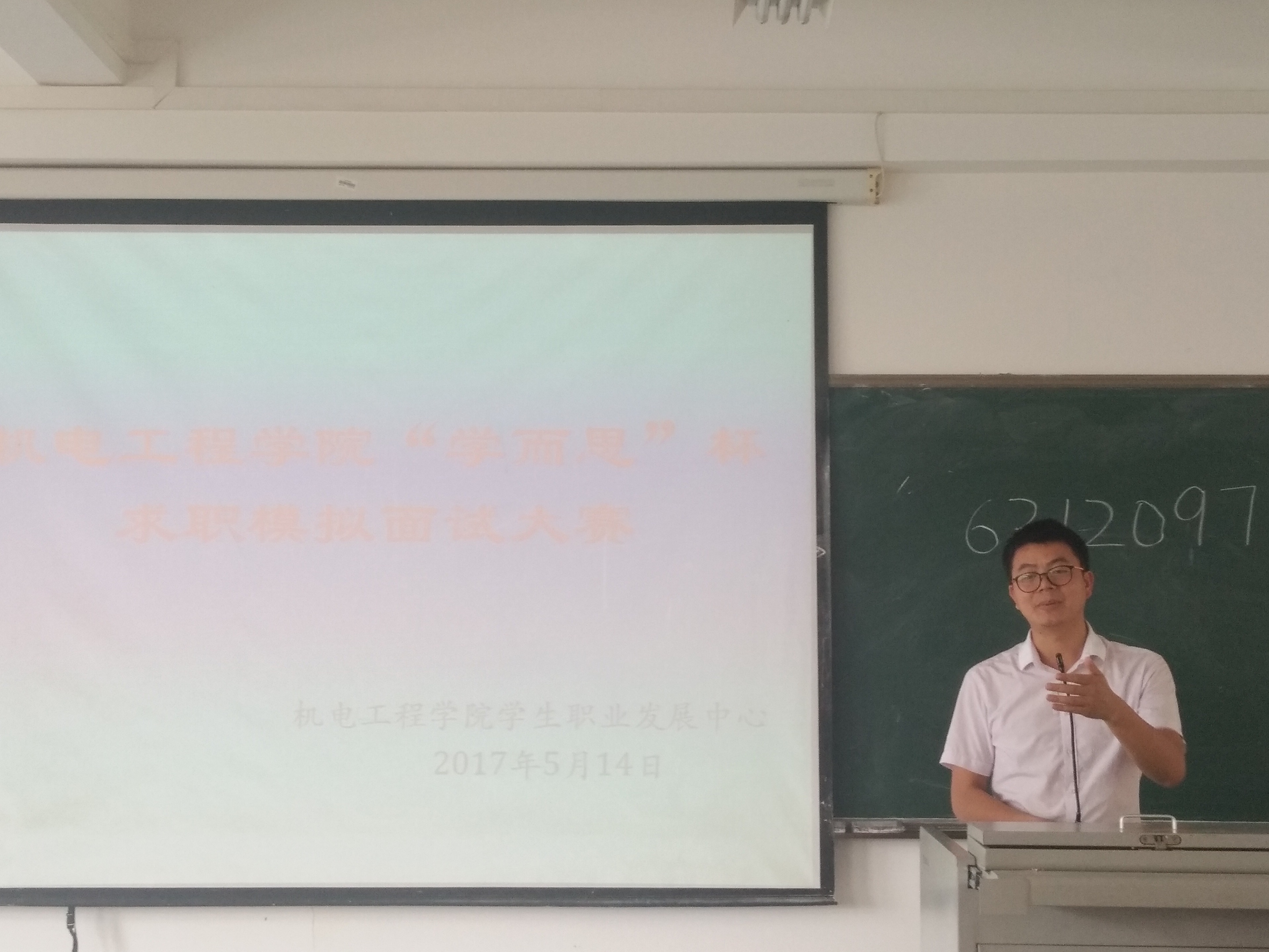 2017年05月14日星期日永利3044集团4教317成功举办“学而思”杯求职模拟面试大赛初赛。担任初赛评委的有就业指导中心张海韵,土木建筑工程学院就业辅导员詹达夫,学院辅导员崔建兵,李青,傅悦五位老师,机电职业发展中心的成员和参赛选手参加比赛。