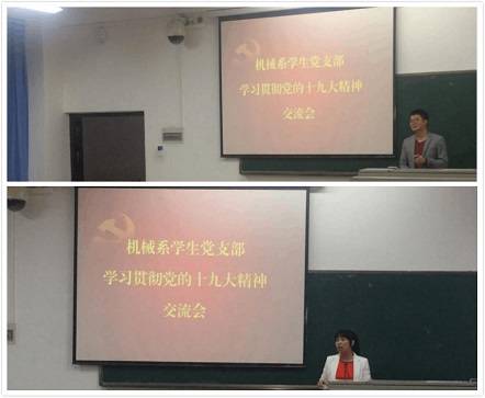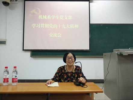 2017年11月7日下午,永利3044集团机械系学生党支部于4-211召开了“学习贯彻党的十九大精神报告会”。红军后代罗曼阿姨、学院党委委员廖宇兰老师、支部书记崔建兵老师出席参加,机械系学生党支部全体党员、发展对象、积极分子参加了报告会。会议由支部组织委员廖宇轩主持。