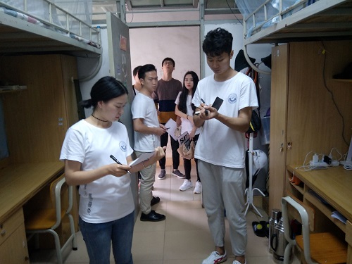 随后,各组人员共同参与,相互协调,分别走访检查了我院各个研究生宿舍,主要对各个宿舍的安全、卫生、宿舍布置等各方面进行了检查,过程中还对所有在宿舍的研究生进行了本科教学审核评估知识的宣讲,让大家更加深入地了解相关内容。