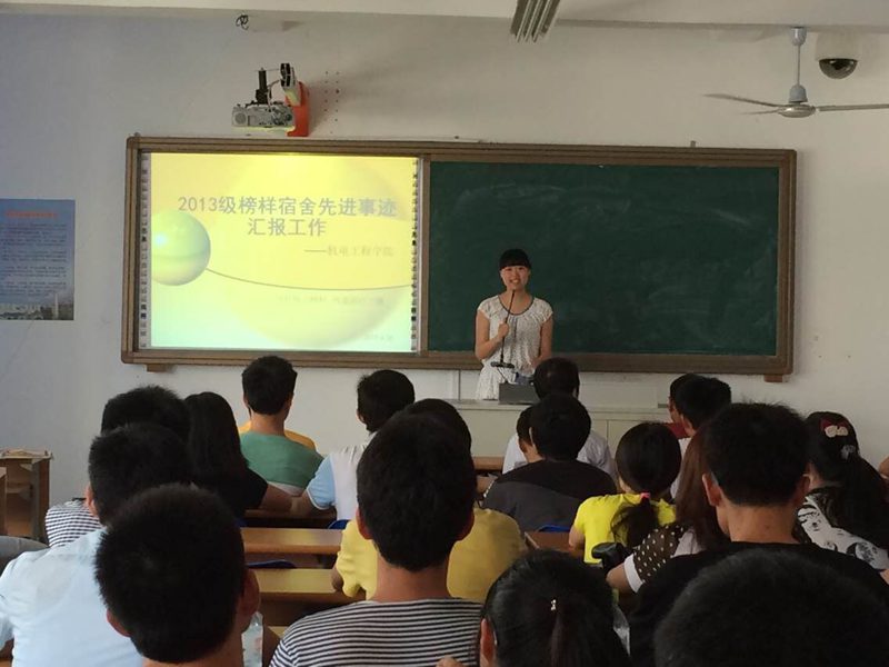 寻找身边榜样,传递前行力量。为推进优秀宿舍文化建设,树立优秀宿舍典型作为学习的榜样,2013级学生工作委员会举办本次榜样宿舍评选活动,其中六个先进宿舍脱颖而出。活动现场,宿舍代表们首先依次上台分别就宿舍在环境卫生、学习以及其他方面所制定的公约及采取的行动等进行了精彩的解说和展示。来自农业机械化及其自动化专业的13#338成员作为宿舍代表,用激情而幽默的语言讲述了他们不平凡的事迹:他们不仅成绩优秀,获奖无数,作为学生干部,也积极参加了学校及学院各项活动。最让人影响深刻的是他们精彩的视频展示。其他宿舍的展示也毫不逊色,博得台下的阵阵掌声,让人感受到团结奋进、朝气蓬勃、温暖和谐的集体。最后,辅导员为获奖的宿舍颁发奖状。其中自动化专业25#202宿舍、204宿舍以及电气工程及其自动化2班25#205宿舍获得了“服务型宿舍”的称号。机械设计制造及其自动化2班13#447宿舍获得了“学习型宿舍”称号。农业机械化及其自动化13#338宿舍、电气工程及其自动化2班25#214获得了“学习、服务型宿舍”称号。