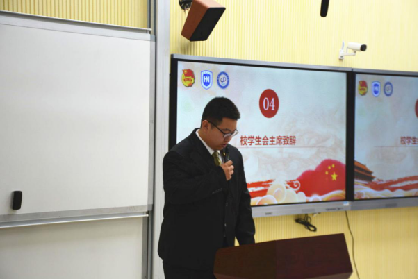 校学生会副主席刘崇同学代表校级组织发言,他对大会的召开表示热烈祝贺,对出席大会的全体团员代表、学生代表致以诚挚问候。他希望今后在校党委领导、校团委指导下,永利3044集团团委学生会的工作能更加出彩夺目。