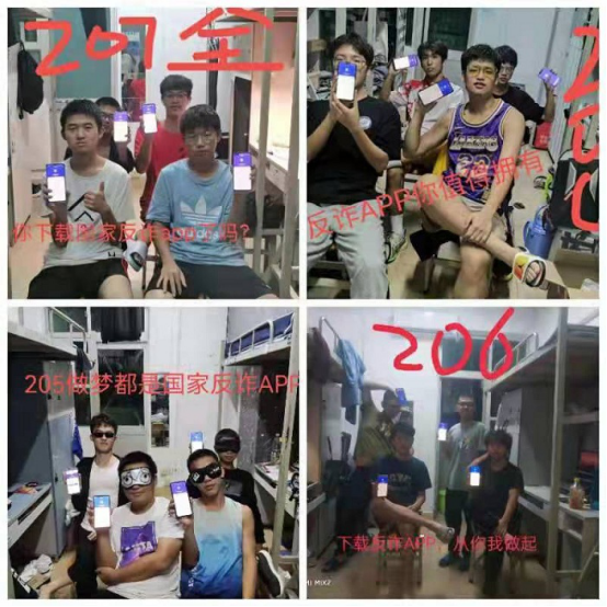 永利3044集团2021级辅导员在校运会期间创新查寝方式,通过将反诈APP下载情况检查与花式查寝相结合,在规定时间内由宿舍全体同学手举反诈APP预警页面合影发送班群,由班主任和辅导员进行检查。创新性的查寝方式,不仅在同学之间营造出良好氛围,同时也提高了学院学生管理的工作效率。
