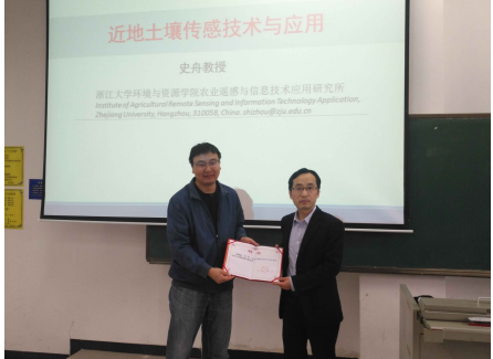 2019年1月7-8号,浙江大学环境与资源副院长史舟教授应邀前来我院,给2016级自动化专业和电气工程专业进行冬季小学期授课,围绕“近地土壤传感技术与应用”展开讲解。史舟教授是农业农村部光谱检测重点实验室副主任,浙江省农业遥感与信息技术重点研究实验室副主任,国际土壤学会土壤近地传感工作委员会主席,中国土壤学会土壤遥感与信息专业委员会主任等,在国内外土壤遥感领域内,具有很深的研究造诣。开班前唐荣年副院长为史舟教授颁发聘书。