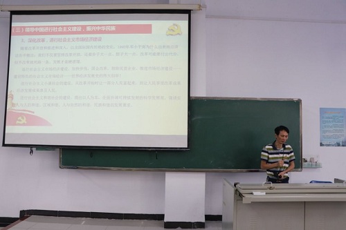 黄国标书记讲述了建党的理论基础“马克思主义”,“毛泽东思想”、“邓小平理论”、“三个代表”重要思想、“科学发展观”、习近平新时代中国特色社会主义思想,向同学们展示了中国近些年取得的伟大成就。他指出我们当代的大学生应该勇为人先,勇于实践,在实践中不断提升自己;不断创新,提高自身素质,为实现中国梦献出自己的一份力量。