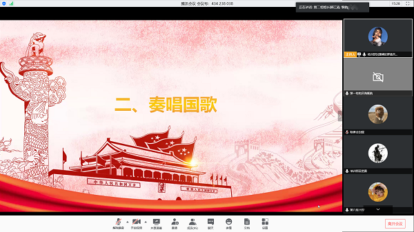 会议在激昂的国歌声中拉开序幕,众人齐唱,歌声铿锵有力,鼓舞人心。