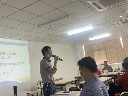 会上,唐院长向与会人员传达《304永利集团关于2020年春季学期学生返校的通知》的相关精神,指出学生返校是对学校疫情防控整体工作的一次巨大考验,全院教师要提高政治站位,加强责任意识,进一步细化、优化开学工作方案,本着学生第一、安全第一的原则,确保学校疫情防控和返校工作每个环节责任落实到位。