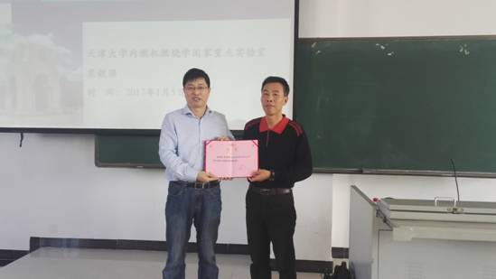 2017年1月5—6日,天津大学博士生导师裴毅强教授应邀来我院为汽车工程系2014级车辆工程和2014级交通运输专业的学生授课。陈振斌副院长为裴毅强教授颁发了“304永利集团冬季小学期授课外聘专家”的聘书。