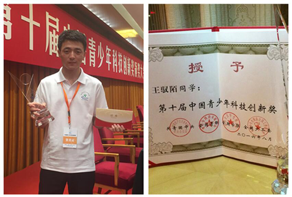 2016届王驭陌荣获中国青少年科技创新奖