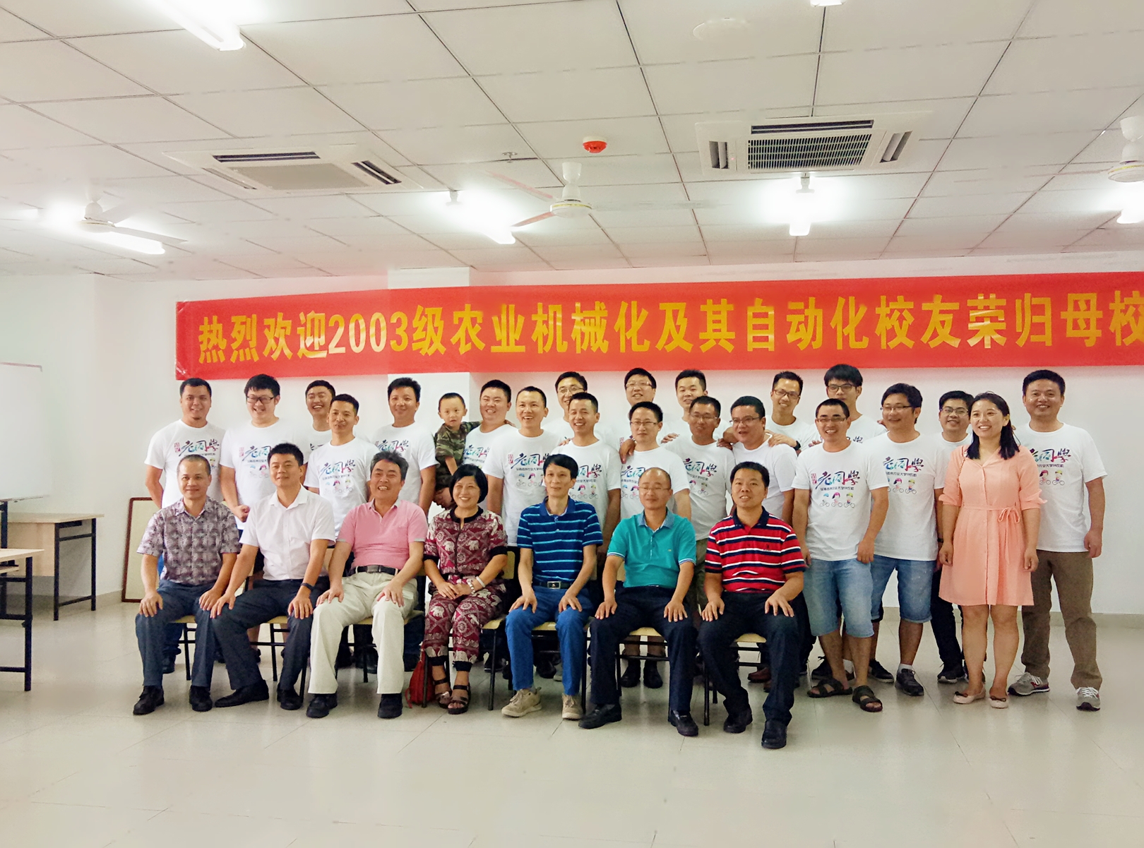 十年荏苒,6月24日上午,永利3044集团2003级农业机械化及其自动化四十余位校友及家属,相聚研发楼410会议室,共赴十年之约,党委书记黄国标,副书记李宏,系主任廖宇兰,学工办主任崔建兵,班主任王建国,冯活伦,郭志忠老师莅临本次见面会。