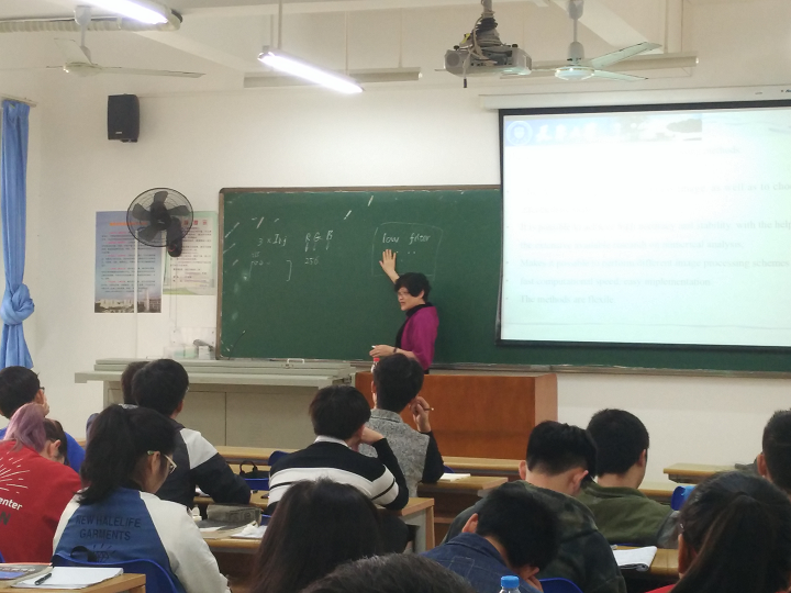 唐晨教授主要围绕图像处理方法展开授课。唐教授首先介绍了图像处理的几大不同研究领域,使同学们认识到图像处理的重要性以及其与我们生活学习的密切相关性;随后唐教授以图像处理方法的发展为脉络,向同学们讲授了图像处理的关键技术及其Matlab实现。最后,唐教授针对目前的研究热点机器学习向同学们介绍了机器学习的原理和多种机器学习方法,并重点介绍了机器学习的应用及发展。唐教授深入浅出的讲解和渊博的学术知识赢得了学生的热烈掌声。课后唐教授与同学们积极互动、亲切交谈,解决同学们的疑惑,分享自己的专业知识。