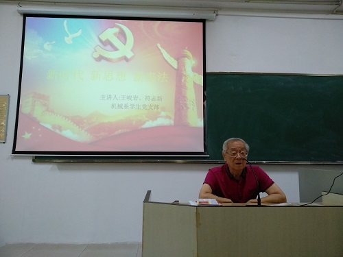 为深入贯彻十九届二中全会、全国两会精神,增强支部党员宪法意识,机械系学生党支部于4月24日在3-109开展以“新时代,新思想,新宪法”为主题的专题讲座。机械系学生党支部有幸邀请到了新中国第一任监察干部、武汉大学教授、304永利集团法学院首任院长王峻岩教授,特邀组织员符志新老师、支部书记崔建兵,支部全体党员及积极分子参加讲座。讲座由支部副书记吴林萍主持。王教授强调,宪法是国家的根本大法,是治国安邦的总章程,是党和人民意志的集中体现,是保持国家统一、民族团结、经济发展、社会进步和长治久安的法律基础,是中国共产党执政兴国、团结带领全国各族人民建设中国特色社会主义的法律保证。会上,王教授分别围绕什么是宪法、修宪的意义、宪法的修改原则等方面系统地讲解。他指出宪法随着党领导人民建设社会主义实践的发展而不断完善发展,充分体现人民对美好生活追求的愿望,保障人民权利和福祉,为中华民族伟大复兴的中国梦提供坚实的保障。王教授的讲话生动而幽默,让在座的学生党员明悟新宪法的丰富内容和深远意义,深刻感受到此次宪法的修改充分体现了党领导、人民当家作主、依法治国的有机统一,也是一次科学立法、民主立法、依法立法的生动案例。