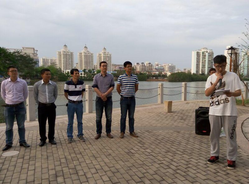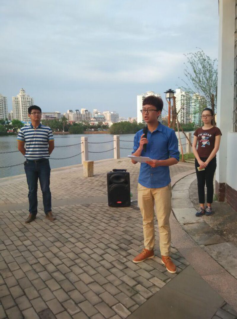仪式开始,由晨读英语角工作人员代表陈世雄同学对过去一年晨读活动进行了简短的总结,同时号召大家新学期积极参与到丰富多彩的晨读活动中来。接着,2014级机电1班的赵亦霖同学代表晨读学生讲话,他表示在过去的一学期里,晨读活动提高了大家的口语,激发了同学们的学习兴趣,全面提升自身英语综合运用能力,新一学期同学们将更加积极地投身于晨读活动中,营造一个良好的学习氛围。最后由黄国标副书记黄国标书记讲话,对晨读活动的成功表示肯定,同时也对新一学期的英语角活动表示鼓励与支持。主持人宣布新学期的永利3044集团东坡湖畔晨读英语角正式启动。
