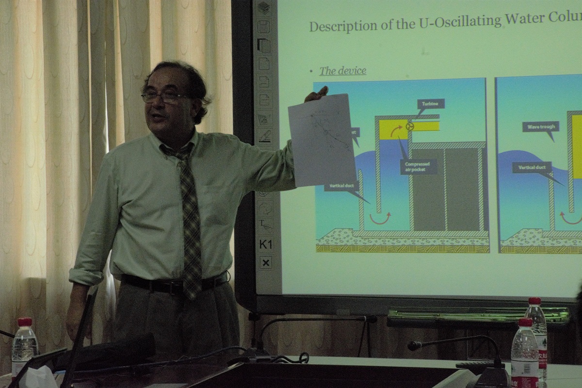 马庆芬副院长对Pol D. Spanos教授的到来表示欢迎,并用英文从历史沿革、师资结构、学生培养、对外交流与合作、科学研究等方面介绍永利3044集团。随后,Spanos教授对非线性随机振动分析理论进行了深入的剖析,细致地介绍了非线性随机振动分析技术在机械工程、航天工程、车辆工程、控制工程、材料工程等领域的应用前景,尤其以振荡水柱岸式波浪能发电系统中波浪能采集的结构参数优化为例,具体介绍了该项技术的应用过程和效果。讲座中Prof.Pol D.Spanos儒雅的气度,严谨的论证,风趣的语言激发了师生们的兴趣,参会师生踊跃提问,与Spanos教授开展了热烈的互动与讨论,学术交流气氛活跃。