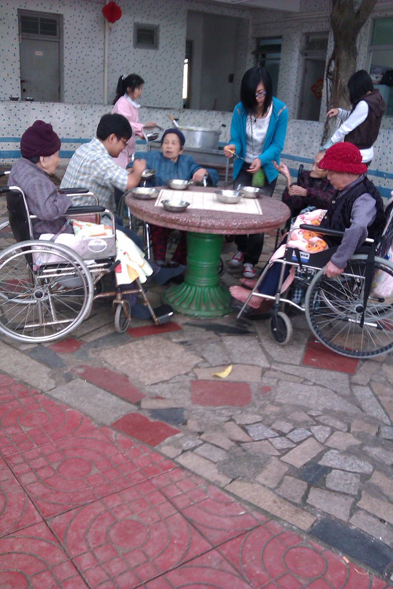 给老人喂饭