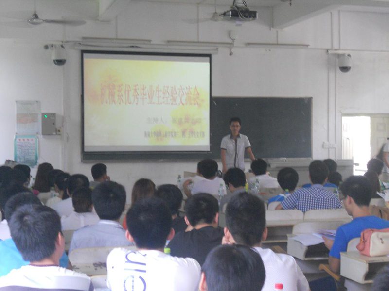 崔建兵老师首先介绍到会的师兄、师姐,并请师兄、师姐一一介绍自己考研、保研及工作经验。在会上,保研到清华大学的连祥威同学,保研到浙江大学的徐顺同学以及考取其他大学的同学就考研的计划安排,院校选择,导师及专业选择,参加夏令营活动等进行了全面的阐述和讲解,为师弟、师妹们介绍了各自的成功的经验,以及需要注意的事宜。参加工作的徐善斌同学,英文同学,张晓东同学分别介绍自己的工作经验及在找工作过程中需要注意的方面和需要准备的问题,并在就业方向、就业前景等方面进行了详细的介绍。在师兄、师姐的教导下,师弟师妹们积极的从学习,生活,工作等方面踊跃提问,充分体现了同学们求学之心,成才之愿。最后在热烈的气氛中,大会圆满落幕。
