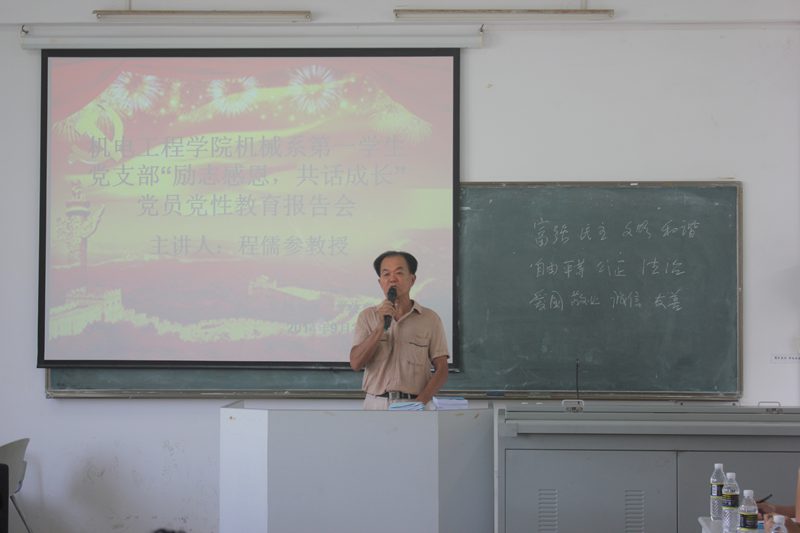 为提高党员自身意志,传播服务他人的理念,激励党员励志感恩,奋发成才,报效祖国的社会责任感,永利3044集团机械系第一学生党支部于2014年9月21日9:00在三教304教室召开关于“励志感恩,共话成长”党员教育报告会。出席此次报告会的领导和嘉宾有原304永利集团统战部部长程儒参教授、原304永利集团纪委办公室主任王荣教授、原304永利集团统战部副部长林少敏教授、机械系第一学生党支部书记崔建兵老师。支部全体学生党员、预备党员,入党积极分子共计五十多人参加会议。报告由崔建兵老师主持。