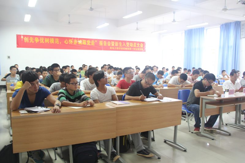 为加强新生对我党认知,端正其入党动机,鼓励在全面提高学生个人素质的同时积极向党组织靠拢,永利3044集团机械系第一学生党支部于11月11日15时在4教115召开 “创先争优树模范,心怀赤诚跟党走”报告会暨新生入党动员大会。原304永利集团统战部部长兼机关党总支书记程儒参教授、原304永利集团统战部副部长林少敏教授、机械系第一学生党支部崔建兵书记、支部委员与部分入党联系人以及2014级机械电子工程专业全体同学等参加本次会议。报告会由支部学生副书记张小峥同志主持。