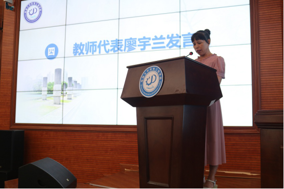教师代表廖宇兰老师结合个人的学习和工作经历,分享了自己的感悟。廖老师的发言为新生们指明了人生目标和方向,同时建议新生们合理膳食,坚持锻炼,积极乐观。鼓励新生们做好规划,充分利用时间,勤奋学习。希望新生们不负青春,不负韶华,不负社会主义新时代。