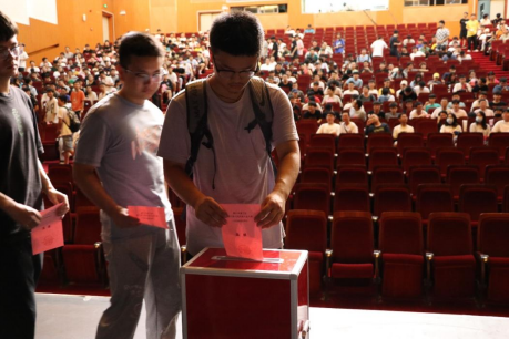 本次选举投票工作由永利3044集团副处级辅导员周霞主持,周霞首先宣读讲解《海口市美兰区第八届人民代表大会代表选举办法》并介绍候选人基本情况,经上报审批,决定由张小其及黎航作为监票人,监票人将按要求现场检验投票箱,检查完毕后加封投票箱。