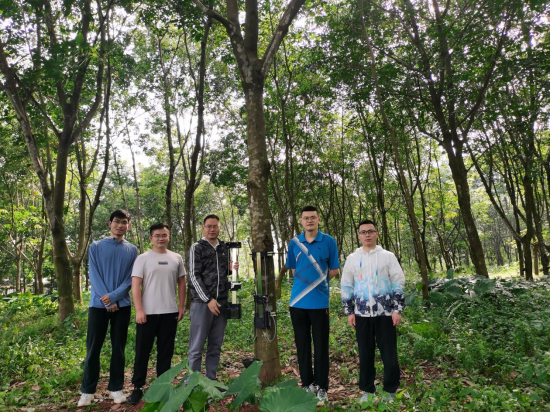 近年来,依托国家天然橡胶现代产业技术体系智能化生产岗位,我院天然橡胶智能化生产团队重点聚焦橡胶产业“胶工荒”的问题,突破了螺旋仿形进阶割胶技术,创新研制出五代“一机一树”式智能割胶机,均已通过胶林试验,实现了割胶深度为1.2 ~ 2.5 mm、耗皮厚度为1.1 ~ 1.8 mm范围内的毫米级精确割胶,下一步团队将进一步优化智能割胶机参数,加快产品推广。