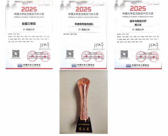 在本次赛事中,永利3044集团南海方程式赛车队凭借扎实的技术积累与出色的团队协作,荣获全国三等奖,在成本分析与制造项目中更是取得了全国第三名的突破性成绩。同时,车队凭借专业的宣传内容,荣获了赛事组委会颁发的“年度优秀宣传团队”称号。