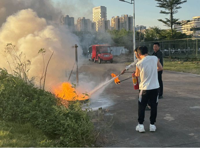 最后在室外场地,学校保卫处王智老师对师生们进行了系统而专业的消防安全培训及演示,指导师生们进行了灭火器的操作及灭火演练。